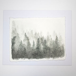 Moody, Foggy Pine Tree Watercolor Landscape, Original, Hand-Painted Watercolor