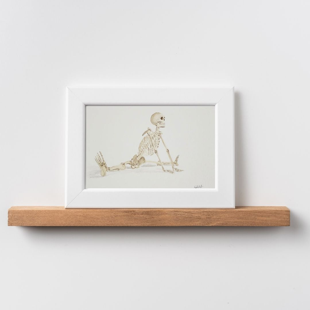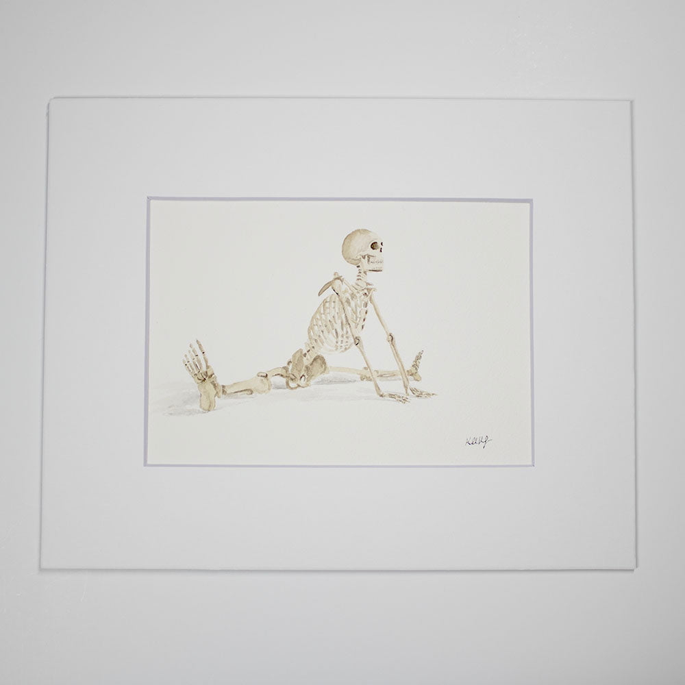 Skeleton Stretching, Original Hand-Painted Watercolor, 5x7