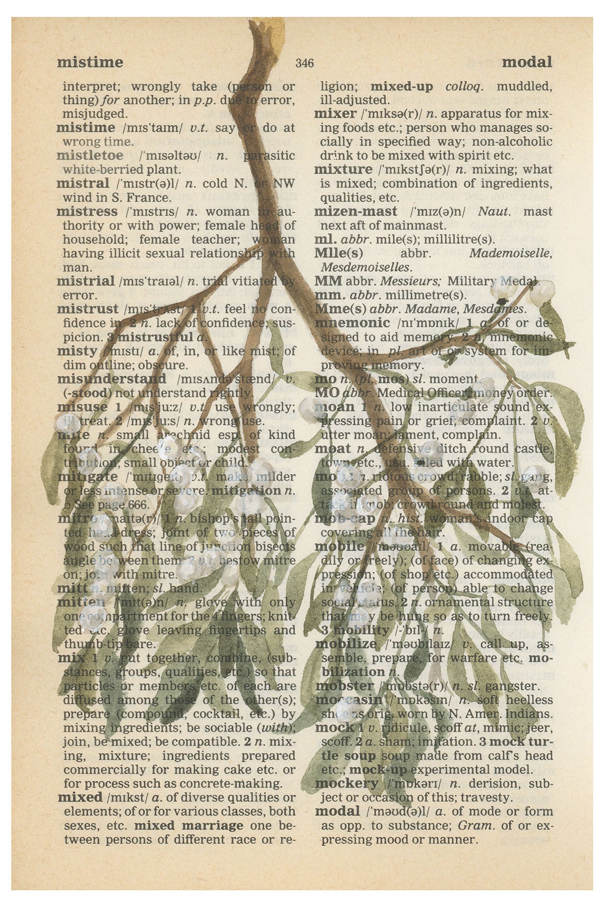 "Mistletoe" Dictionary Watercolor Print